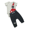 Prepara a tu pequeño aventurero con nuestro conjunto divertido y cómodo. El mameluco de algodón presenta un estampado de dinosaurio y un bolsillo con el divertido estampado "Snack Time", perfecto para guardar pequeños tesoros. Los joggers ajustables con cordón también tienen el estampado "Snack Time", ofreciendo comodidad y estilo para jugar y explorar. Este conjunto es ideal para días llenos de diversión y aventuras, combinando creatividad y confort en cada detalle.